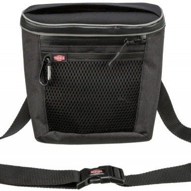 Liten grå veske/beholder til å ha godbiter på tur