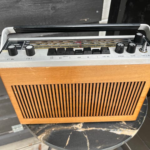 Selger en Radionette kurer automatic radio. Standen er ukjent. Har forsøkt med å sette inn batterier og ser displayet lyser. Pen radio og pent utseende i god stand
