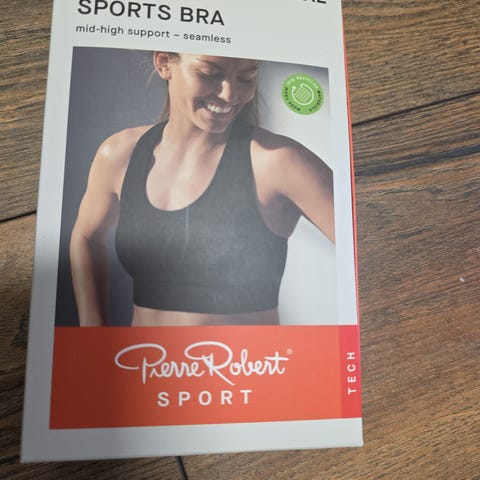 Svart Pierre Robert Sport BH i str S. Helt ny i originalemballasje. Modellen har bryterrygg og er utviklet for trening med middels støtte. Sømløs konstruksjon gir et jevnt uttrykk uten markerte sømmer. Egnet til ulike typer fysisk aktivitet der det er behov for støtte og bevegelsesfrihet.