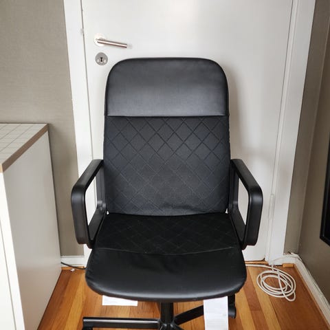 Komfortabel, lett og enkel å flytte rundt på. Formen på armlenene øker komforten, og bremsemekanismen på hjulene holder stolen på plass når du reiser deg – og slipper bremsen når du setter deg ned.