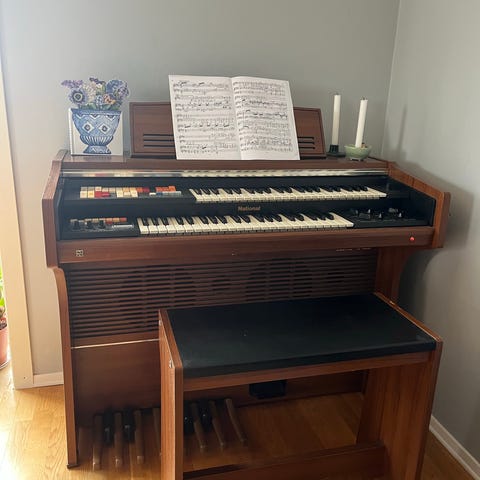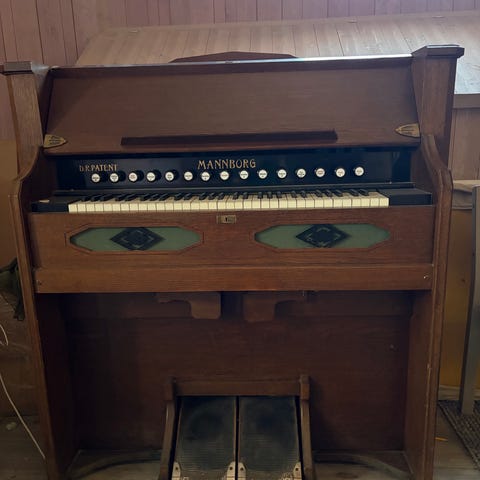 Oppsett: Orgelet har to manualer (tastaturer) med 44 tangenter hver.