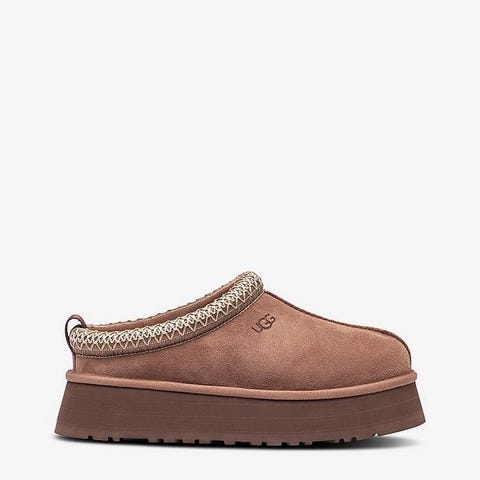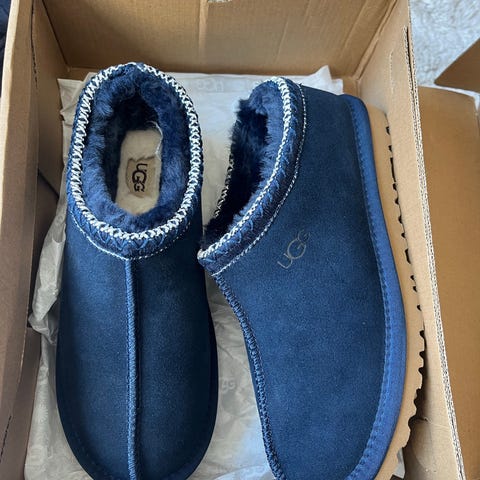 UGG tazz i størrelse 37. Modellen er en åpen hæltøffel med kraftig såle og brodert kant øverst. Farge brun med røde detaljer langs kanten. Bare prøvd på. Selges grunnet feil strl. Små i strl, passer en 36 eller liten 37. Nypris 1799 selges for 1500