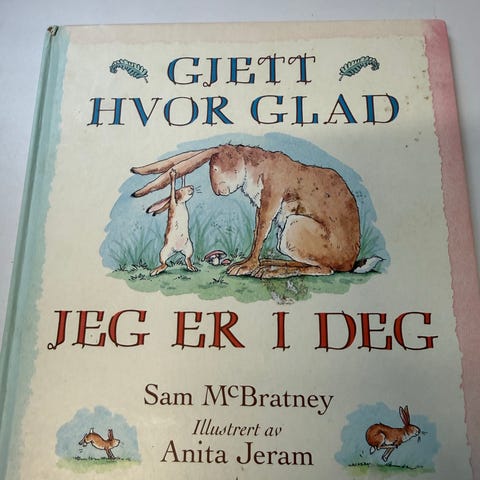 Gjett hvor glad jeg er i deg av Sam Mc Bratney. Illustrert av Anita Jeram.