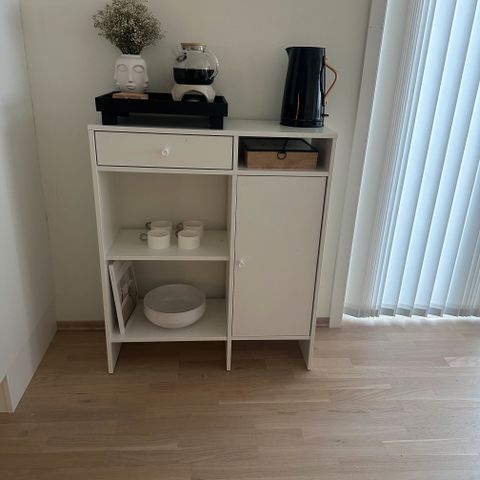 Vaskemaskin skapet skaper orden i vaskerommet og har fin hylleplass til oppbevaring av vaskemiddel, håndklær osv.