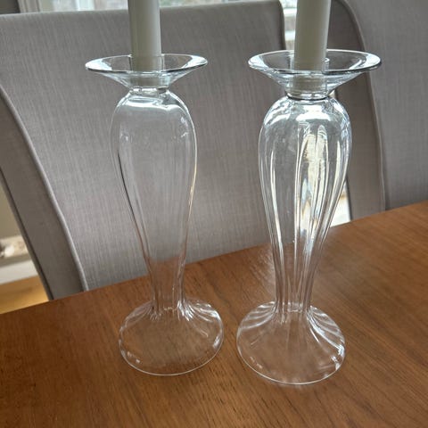 Stor dekorativ lysestake i glass – blomsterdesign – 36 cm