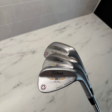 Selger Titleist Vokey SM10 nickel wedger med loft 54° 10S og 60° 10S.