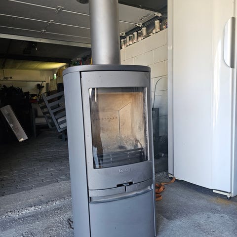 Det er ubrukt og ligger i eskene- ble kjøpt for sette inn en vedovn. Har satt inn en i badstue.
