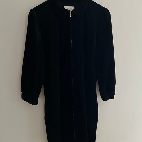 JDY hverdagskjole i svart cordfløyel, størrelse L. Avtagbart knytebelte. Kun brukt èn gang.