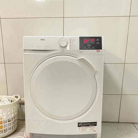 AEG Tørketrommel SensiDry 7000 modell TR734E95E kjøpt ny i sept 2025 hos Elkjøp. Nypris 11 995 kr. Selges pga flytting. Kvittering følger med.