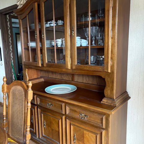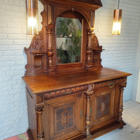 Antikk skjenk i mørkt tre med speil