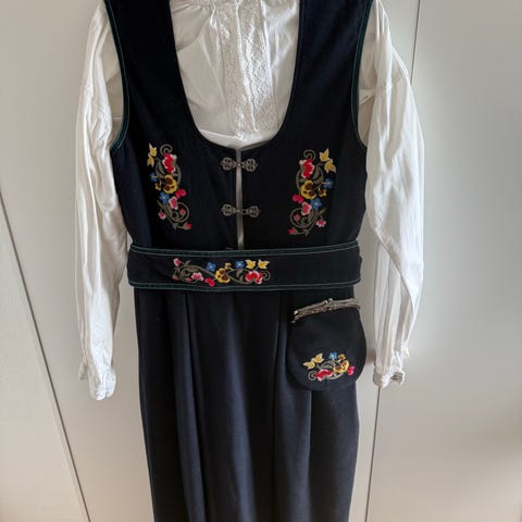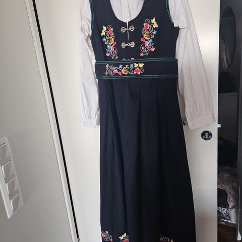 Pent brukt bunad til jente til salgs. Størrelse 34/36, jente på 12-14 år. Fine detaljer.