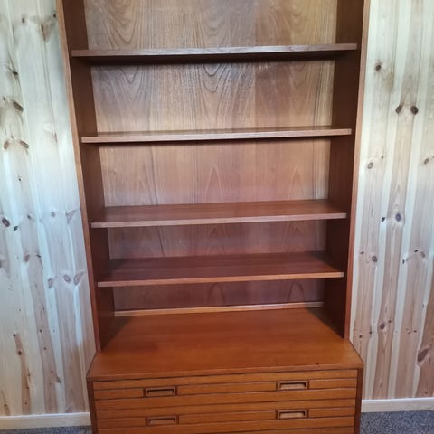 Retro teak reol selges pga plassmangel.
