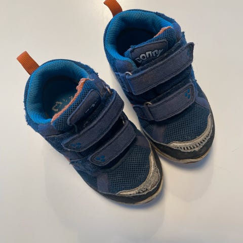 Ikke så mye brukt før de ble for små, men litt slitt på tåa.