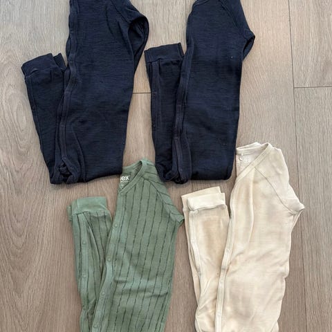 Pysjen er nesten ubrukt. Føttene på pysjen kan du både ha åpen eller «lukke» igjen.