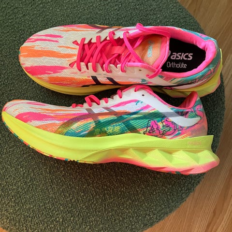 Mizuno løpesko i størrelse 40. Skoene er hvite med snøring og overdel i pustende mesh kombinert med syntetiske forsterkninger. Yttersåle i gummi med mønster som gir grep ved løping. Egnet til løping og annen lett trening utendørs eller innendørs.