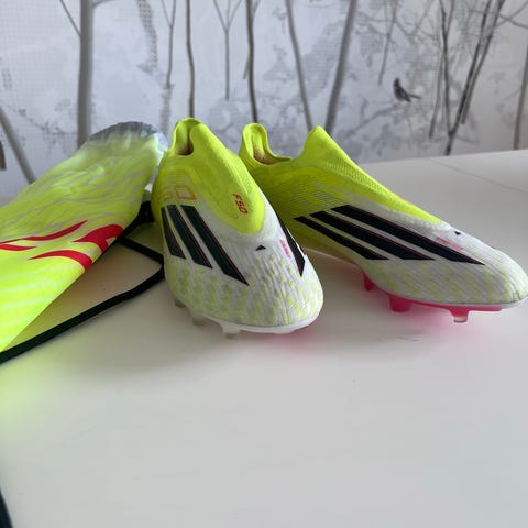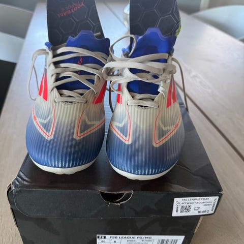 Adidas F50 Elite AG fotballsko i lilla og grønn farge. Modellen er tilpasset kunstgress (AG) med faste knotter. Skoene leveres med original eske, ekstra såler og F50-sko-/gympose i matchende farger. Egnet som fotballsko for spill på kunstgressbaner. Størrelse 39 1/3