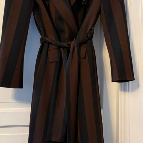 byTiMo kåpe for dame i størrelse S. Tilsvarer strl M. Ytterjakken er brun og laget i polyester. Modellen har hette og mykt fôr på innsiden, samt snøring i livet for justering av passform. Lengden går nedover låret, og plagget passer som yttertøy i hverdagen eller til enklere bruk utendørs.