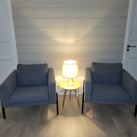 Lenestol, Kilanda lys beige fra IKEA. Nesten ikke brukt, så ingen synlige bruksmerker. Vil si at den fremstår som ny.