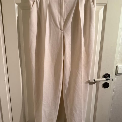 Ubrukt vid modell, 100% lin, hvit bukse fra MKDT.