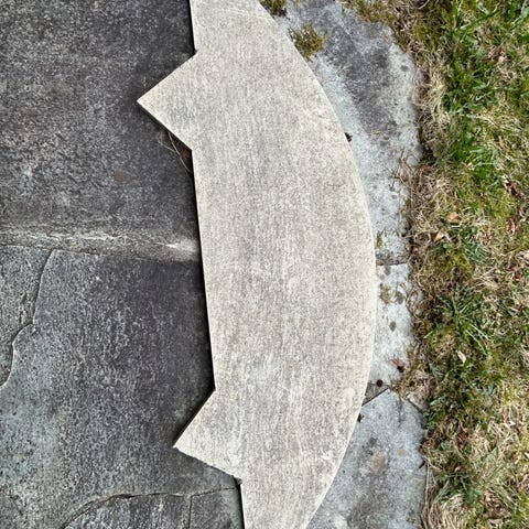 10 esker a 12 fliser. Grå, diamantform, sement flis, 1,5 tykke, 27x10cm.