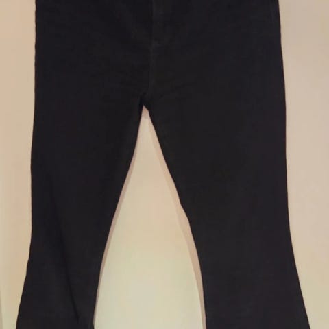 Str 28. Knapp og glidelås i front. 99% økologisk bomull, 1% elastan.