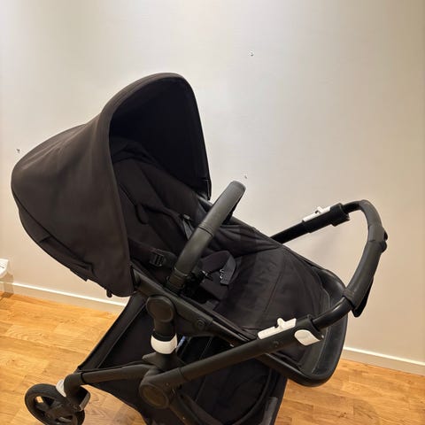 Cybex Platinum justerbar sittedel med fempunktssele og fotstøtte. Frontbøylen er i brunt imitert skinn med Cybex-logo. Stor kalesje gir god skjerming. Medfølgende regntrekk som dekker hele sittedelen. Egnet til daglig bruk for små barn på tur og i hverdagen.