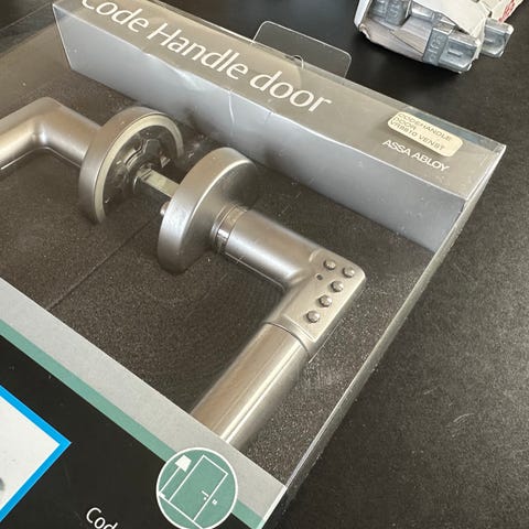 Helt ny. Åpnet og opprettet kode, men vi har for gammel dør så den passet ikke. Ble derfor pakket ned igjen. Kjøpte denne i høst, så vi får ikke levert den tilbake. Kjøpte den for over 3000,-, og nå er den på tilbud hos Bauhaus til 2895,-. Kode som ble opprettet er notert i papirene som fulgte med. Batteriene er tatt ut, så muligens kode er slettet. Batteriene ligger i esken.