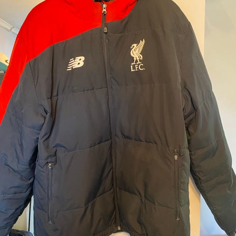 New Balance Liverpool FC dunjakke i rød farge med hette. Jakken har gjennomgående glidelås foran og LFC-logo samt sponsorlogoer på brystet. Størrelse 158 (EURO), som tilsvarer ungdomsstørrelse. Mansjettene har justerbare borrelåser. Egnet som ytterjakke i kjøligere vær for ungdom som ønsker en varm og lett jakke med Liverpool FC-profilering.