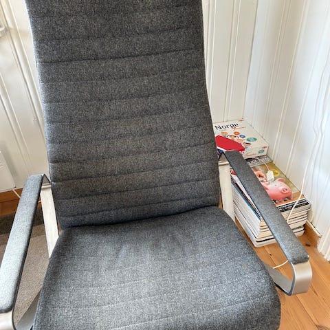 Pent brukt. Blitt slitasje i stoffet, men en kjempegod stol og sitte i