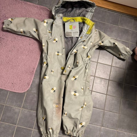 Pent brukt regndress. Litt tykkere for slik at den passer til vinter. Str 86. Ingen slitasje, men noe misfarging på stoffet slik man ser på bildet.