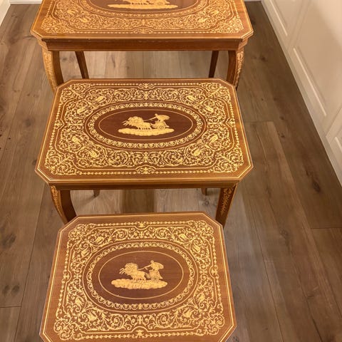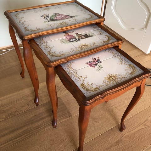Settebord, rokokko, fliser, sidebord, blomsterbord.