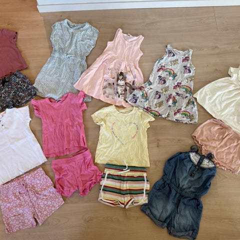 Nydelig klespakke perfekt for vår og sommerdager i størrelse 134/140. Alt kan mikses og matches.