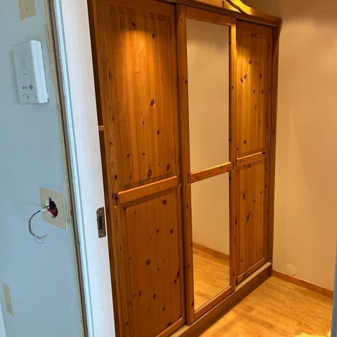 Garderobeskap gies bort. Ser helt fint ut, men mangler en hylle (se bilde).