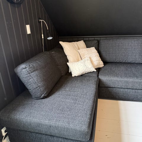 Sofa som er brukt. Litt merke på ene armlen, men vil tro det kan vaskes bort. Ellers god stand. 264cm bred.