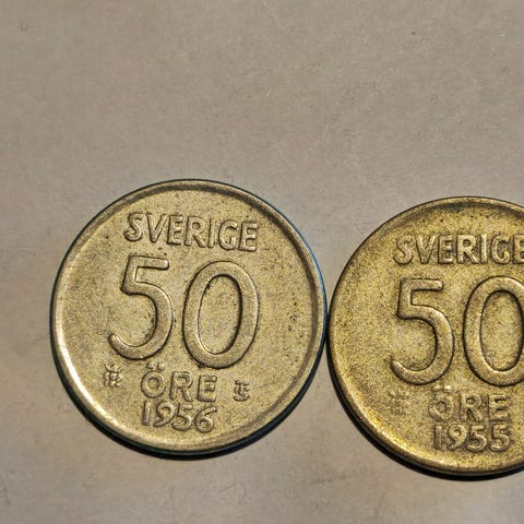 10 stk Svenske 25 ører 1945-1961, Sølvmynter, se bilder for kvalitet