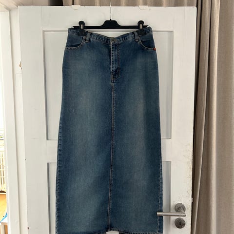 Pent Basic apparel denim skjørt str M. 94% bomull, 4% polyester, 2 % elastan. Vintage grey. Modell Chloe.