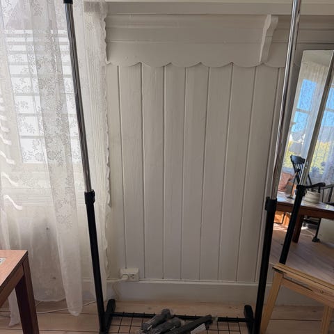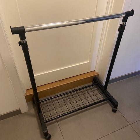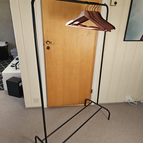 Pent brukt klesstativ med skohylle fra Jysk. Se bilder for mål. Må hentes.