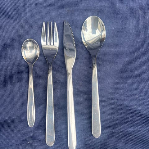 IKEA LÖFTESRIK bestikksett i rustfritt stål. Settet inneholder kniver, gafler, spiseskjeer og teskjeer, kjøpt for to måneder siden og har kjøpt feil modeler. må hentes