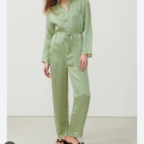 Pent brukt jumpsuit fra Stine Goya. Svart med prikker i gull.