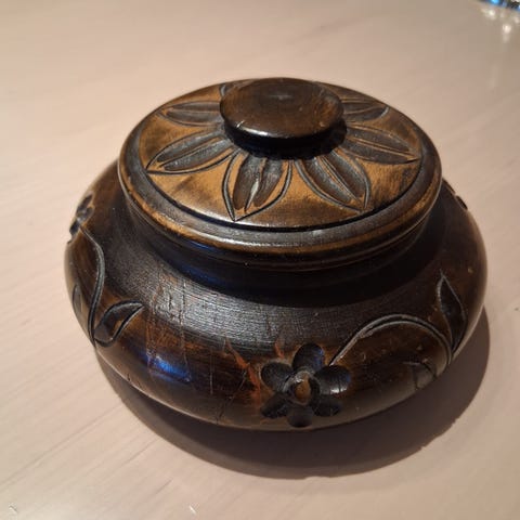 Eldre dreid rosemalt Tobakkboks.
