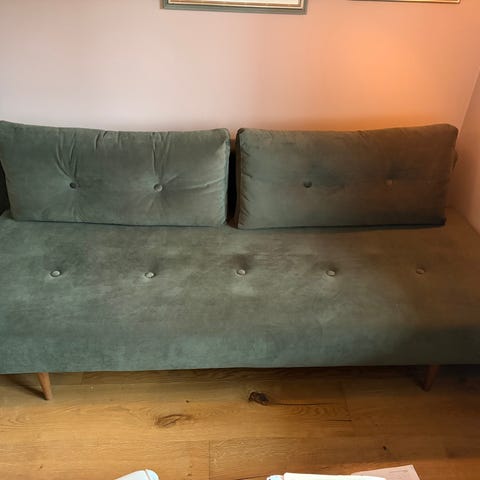 Selger pent brukt Frode sovesofa i slitesterkt rosa stoff med armlener, fra danske Innovation Living. Når sovesofaen er brettet blir "sengen" 130 cm bred og 200cm lang. Ved behov kan man legge på ekstra overmadrass. Overmadrass følger ikke med. Det er en praktisk "lomme" under sofaen til å ha dyne/pute i.
