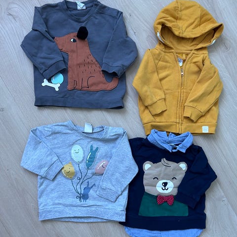 Mango genser for barn, unisex, i størrelse 92. Flerfarget design med ulike motiver og mønstre som passer både gutter og jenter. Egnet som hverdagsplagg, kan brukes alene eller lagvis over body eller t-skjorte. Materialet fremstår som mykt og behagelig for barn i denne alderen.