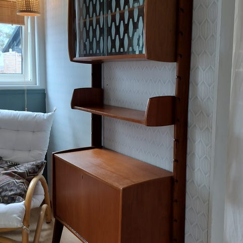 • 6 hylleplater + en liten oppbevaringsmodul fra Elegant og en hyllemodul fra Talgø Møbelfabrikk fra 50-70 tallet (se bilder)