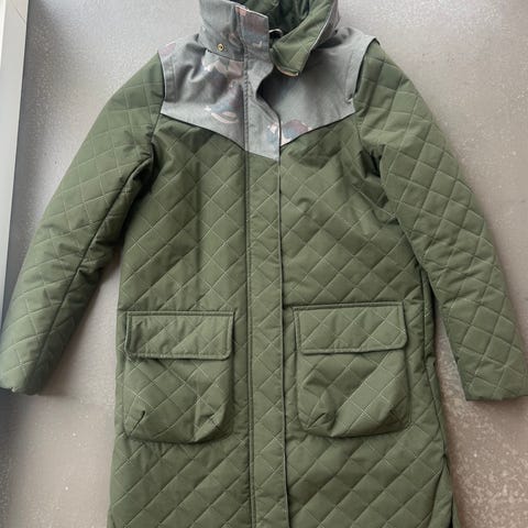 Det var et hull i foret inni venstre arm som er reparert derfor lavere pris. Nypris ca 3000kr.