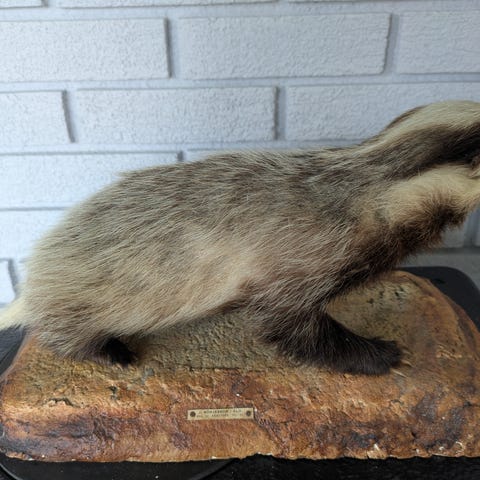 Utstoppet grevling på sokkel