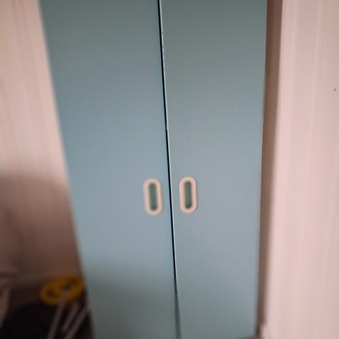 Solid og god plass, står på 2 bein og festes i veggen. 8 skuffer med plass til 40-45 CDer i hver. Ramme i tre, skuffer i metall.