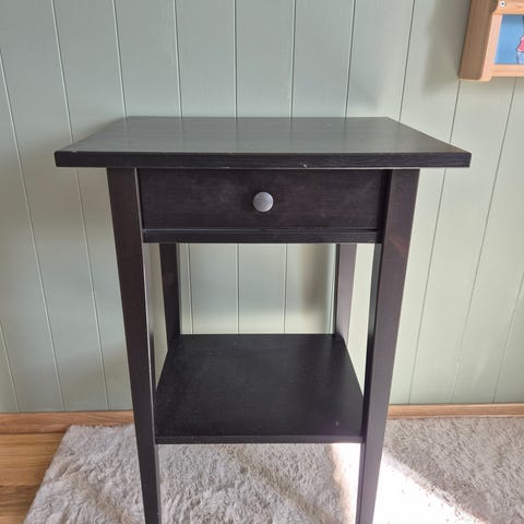 Selger IKEA Hemnes nattbord i svart. Har bruksmerker.