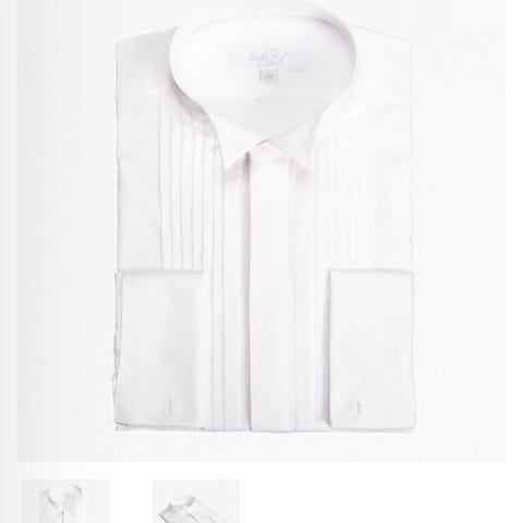 Hvit smoking/fin herre skjorte i str. 40 rundt halsen med mansjettknappehull