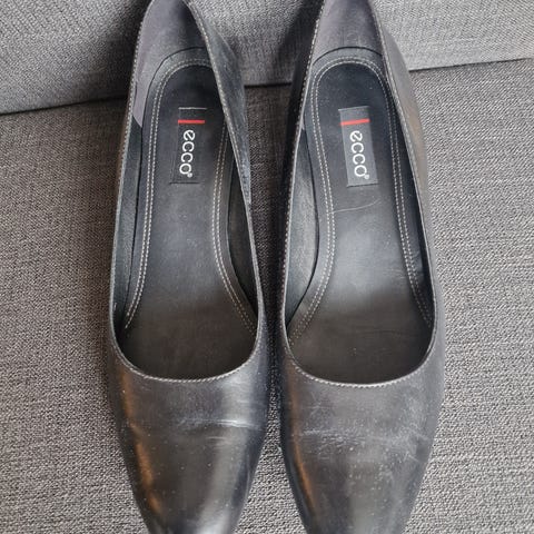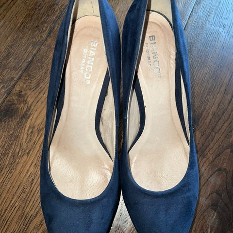 Ecco hæler i størrelse 42. Skoene er i blå farge med avrundet tå og middels høy hæl. Yttersålen har mønster for bedre grep. Passer til bruk i hverdagen eller til penere anledninger der man ønsker en enkel og klassisk hælsko.