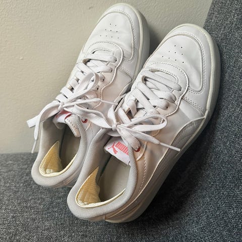 Puma sneakers i hvit farge i størrelse 36. Klassisk modell med snøring foran og gummisåle.